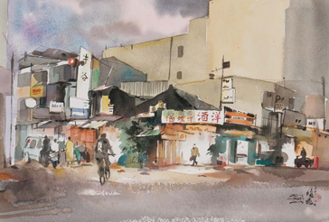 擷取西洋畫之透視光影與質感。吸收中國水墨畫之特色,重視韻味、意境之追求。加上留白與用墨之效果強化主題,使之更有個人風格。