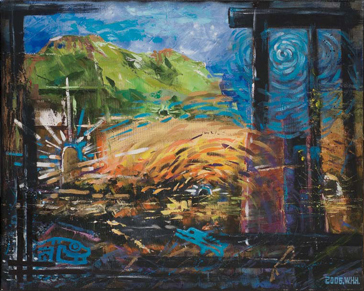 時光世紀,琤琤流逝,你我理想,比翼飛昇,勇敢執著,向璀璨翔。賞畫的你,好似就地框住。你的視覺動念,是否被具象的魚兒帶入璀璨的大方圓中;方圓界面中,聚組、轉動、躍越、氣動的快樂氛圍環繞你而行,聚集的快樂,正向灼灼牽引著你,於畫中洞門,再進入更深遠的另一界面。相信,執著的人,在另似近似遠的方圓裡,翔夢成真,會更幸福快樂。