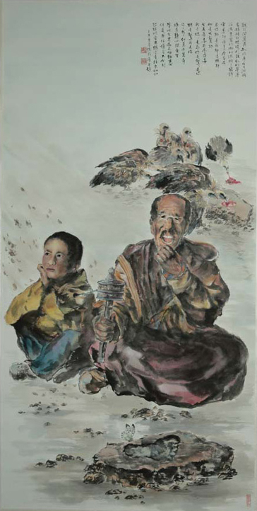 此水墨作品是個人探討「生死」主題之「天葬系列」其中一幅近作,創作時間為2008年春季。儘管科技進步,文明發展,生與死始終是無法解釋的奧秘,從古至今每個民族都有其獨特的看法,因此對生死的態度也各有不同。以西藏為例,他們認為肉體只是一具皮囊,真正的生命是神識(靈魂),而神識可以永恆,也可以輪迴,因此將死亡後的肉體佈施給禿鷹其實無損於真正的生命,正因為如此,死亡便不再可怕了,生與死只不過是「如來如往」而已。