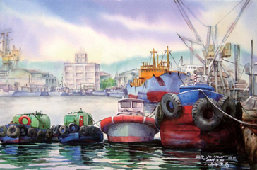 從停泊中的船型佈局,找尋另一種沉思與寜靜,伴隨著情感的感動與寄託,便是本人在創作中極想追求的,故,本創作乃藉由停泊於八斗子漁港之船隻為創作出發點,透過水彩之表現技法方式呈現,表現出自己另一種靜謐空間的思緒。