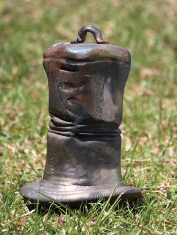 揉自陶土的塑性,緊臨密合的伸展自圓底基石的每一面,每道刮痕是榮耀的象徵,每處凹陷是勇氣的歷鍊,在樂燒還原多層次的色澤中,展現不同的變化,一如遊走的生命色彩。