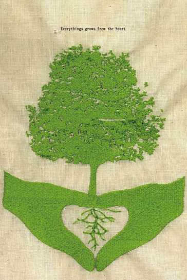 人的心,就像植物的根,當根扎穩了,樹葉就會繁茂,當心茁壯了,萬事就能備足、開散枝葉。因此,心靈的教育是最重要也是最根本的,就像樹的根。教育應該從最基礎的根做起,首重心靈教養,讓每個小孩的童稚之心在老師雙手的教養下,從根本茁壯為頂天立地的大樹。本作品為展現視覺的溫暖質感,使用布與線作為使用材質,刺繡技法構成整個畫面,讓傳統精細的工藝技法,藉由日常生活的布線材質傳遞心靈教育的溫暖特質與重要感。 |