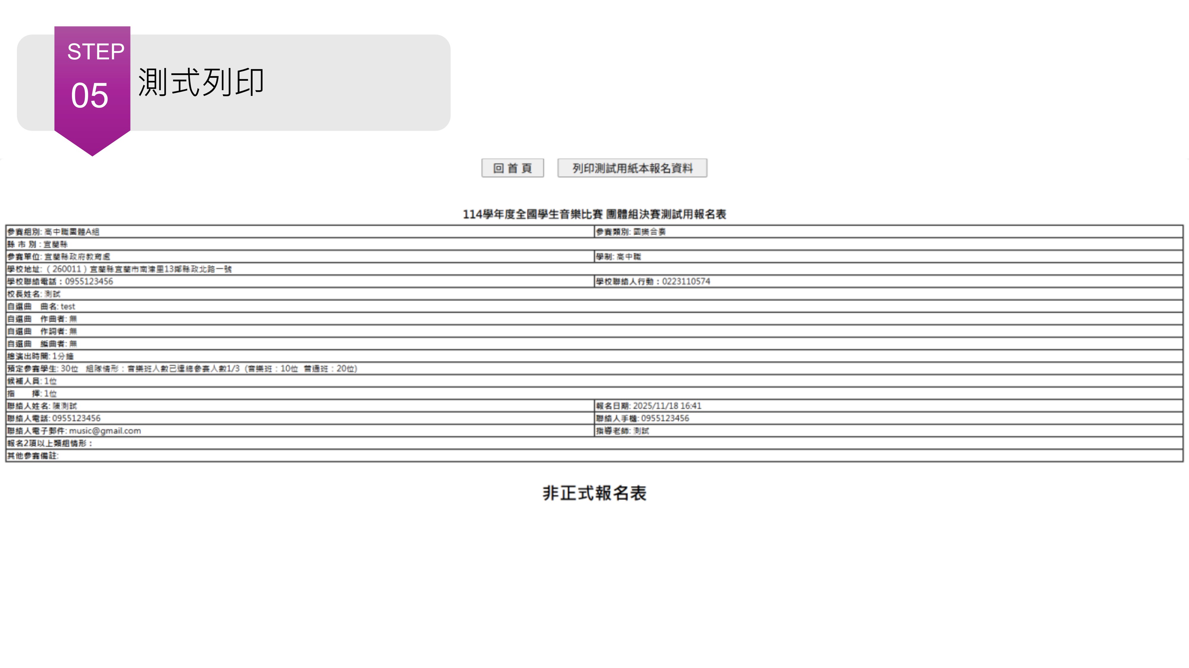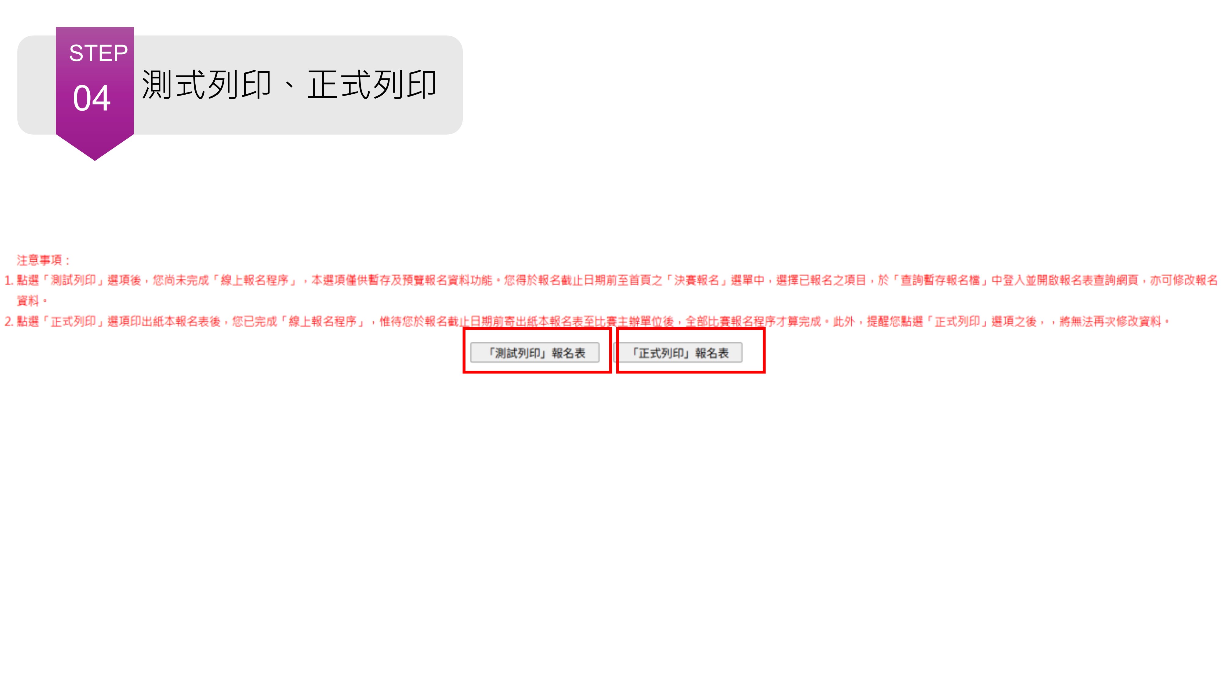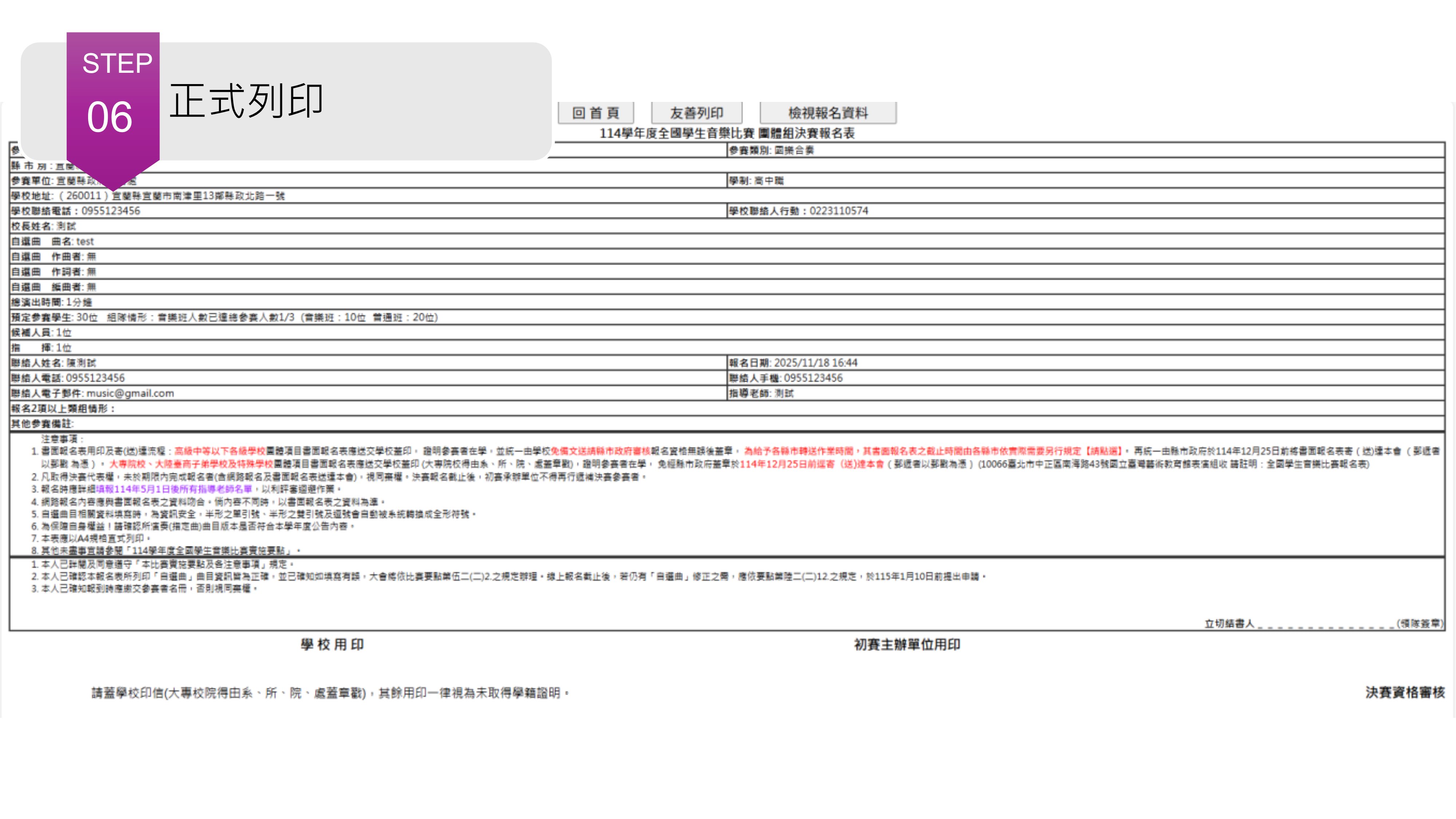 至此才算報名完成,請列印本頁面:點選列印正式紙本報名資料。