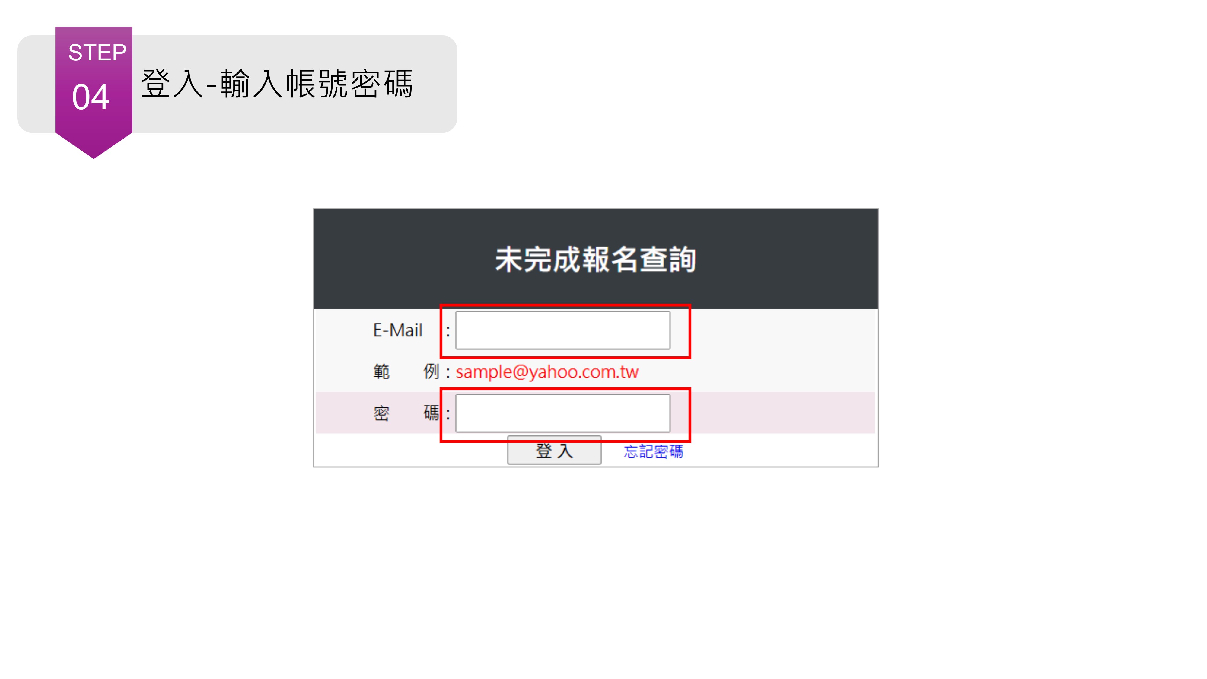 ☛Step4.請輸入報名時填寫的帳號(mail)和密碼。