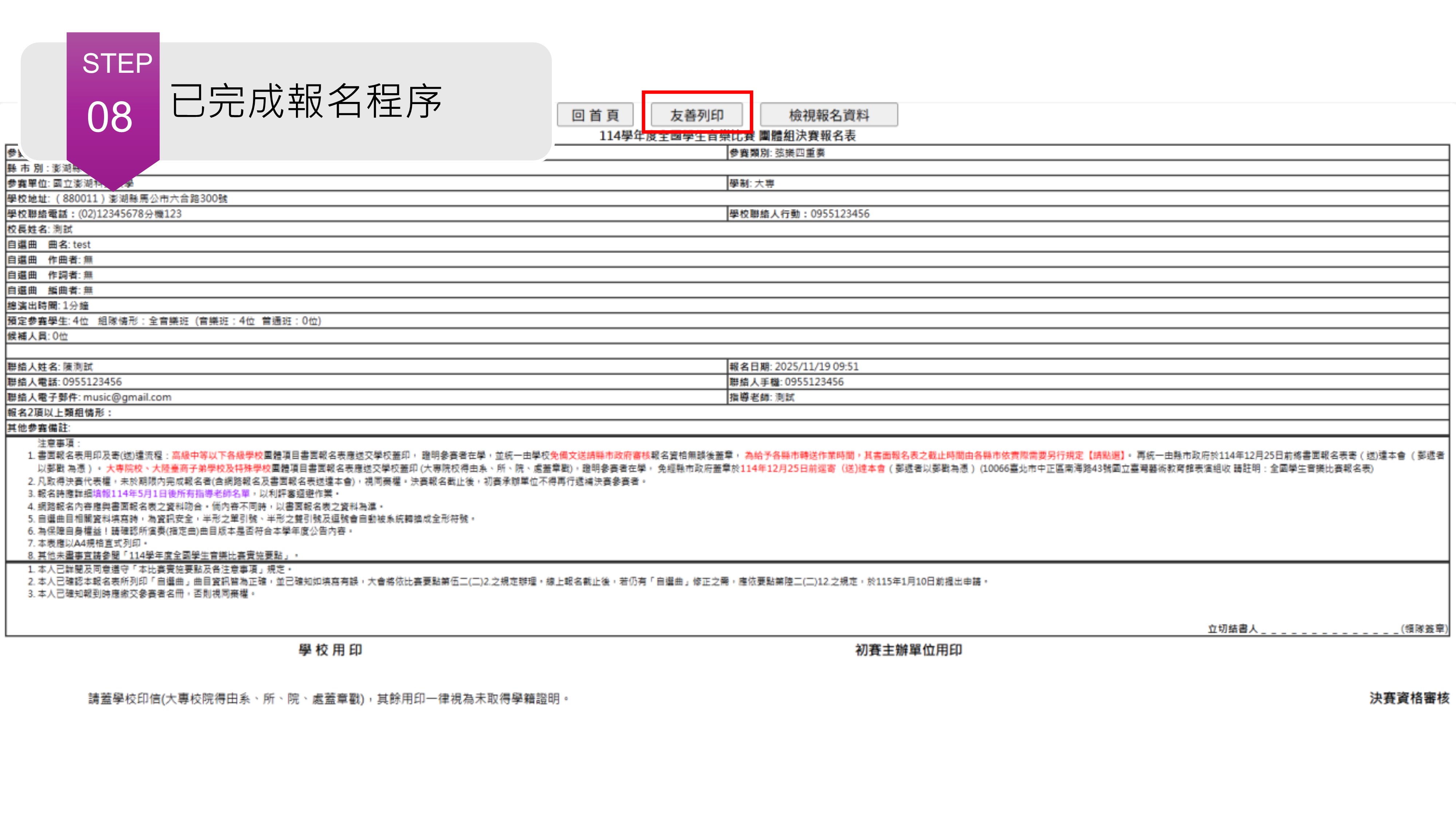 Q20:【測試列印&查詢報名結果】操作