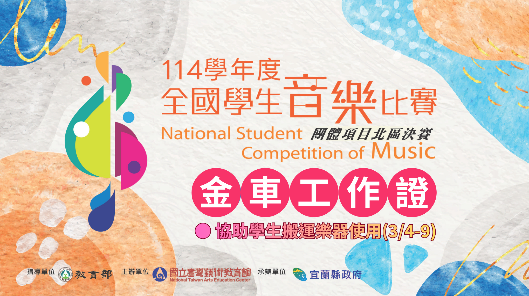 114學年度全國學生音樂比賽【團體項目-北區】金車噶瑪蘭威士忌酒廠展演廳,參賽隊伍需持工作證才能入園,請於出發前下載列印工作證,當日攜至會場
