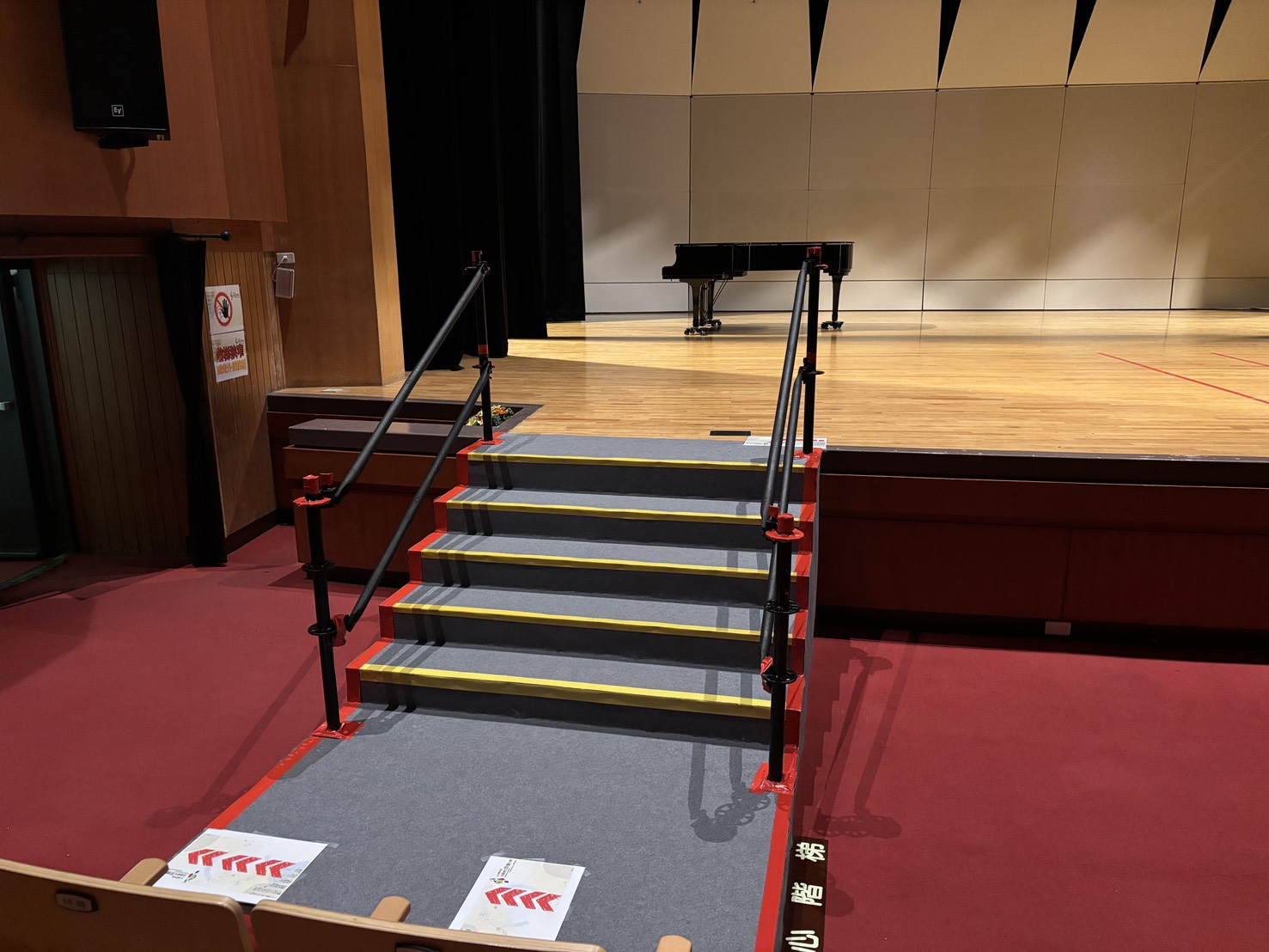 二、南投縣政府文化局演藝廳已完成舞臺退場樓梯(含扶手)搭設作業,供參賽人員退場使用。原舞臺既有階梯屆時將不予使用。